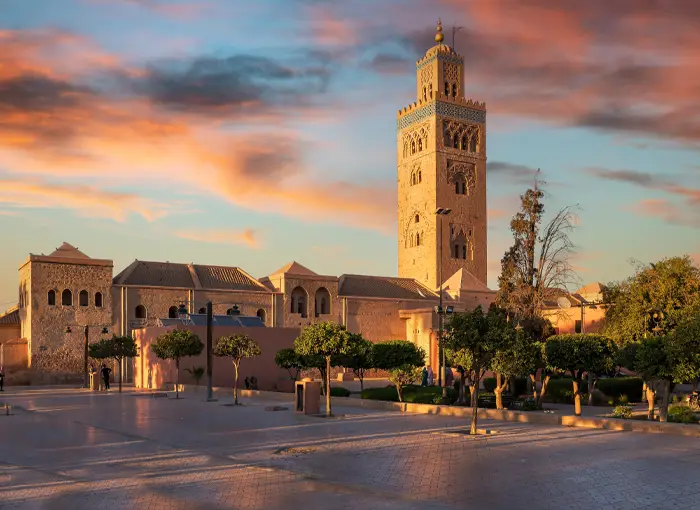 Exterior de la Mezquita Koutoubia y sus jardines.