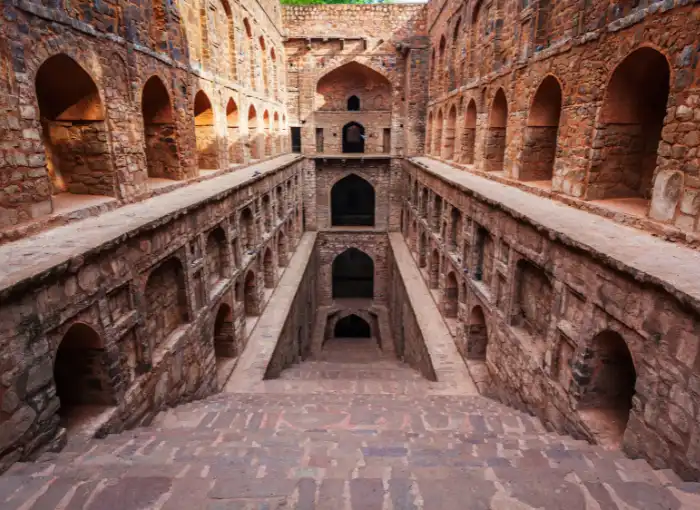 Panoramic view of Red Fort, visit Jama Masjid, Raj Ghat, Agrasen Ki Baoli, Government Buildings along Raj Path, and India Gate.