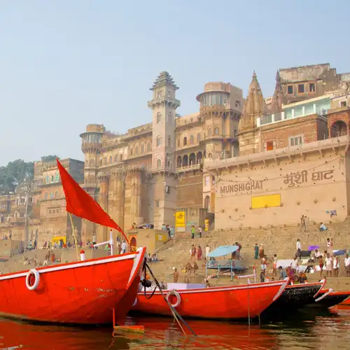 Early morning boat ride on the Ganges to witness pilgrim purification rituals. Walking tour of the old city including Golden Temple (outside view) and Durga Temple.