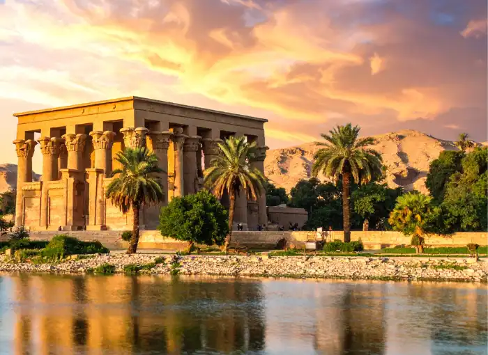 Full board. Visit to the High Dam, considered the largest dam in the world at the time, with a body of 3,800 meters and 111 meters in height, the Unfinished Obelisk with its height of 42 meters and weight of 1,176 tons in the pink granite quarries. The Temple of Philae or the temple of the goddess Isis, built in the Greek period and relocated to Agilkia Island to save it from the waters of the Nile after the dam was built. Felucca ride around the islands of Aswan. Overnight on board in Aswan.
